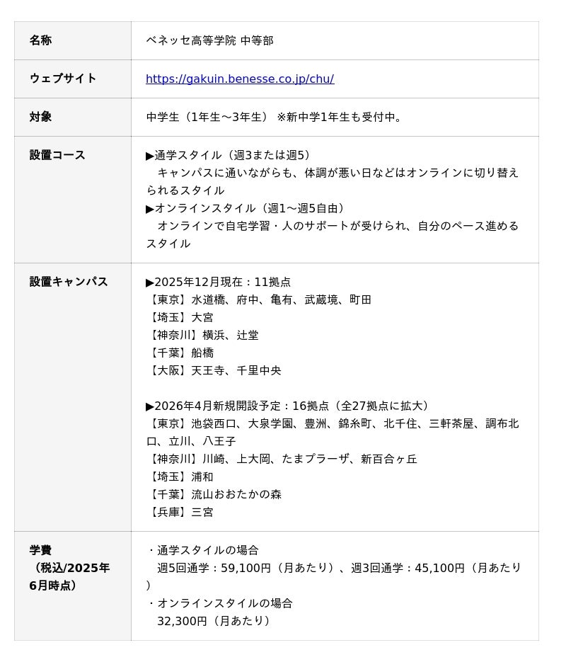 ■「ベネッセ高等学院 中等部」概要