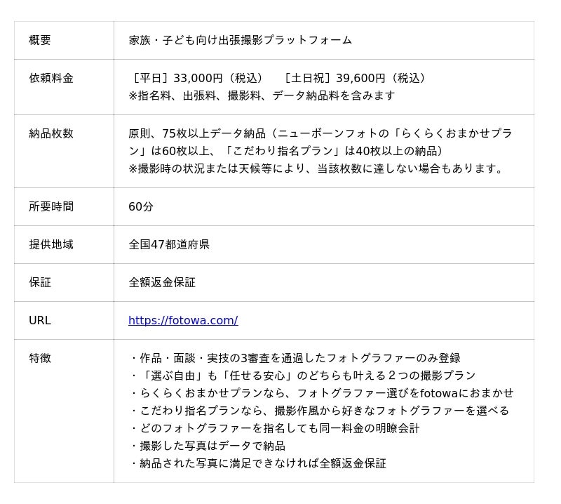■ 家族・子ども向け出張撮影プラットフォーム「fotowa」について