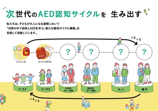 子どもたちが遊びの中でAEDを知り、その家族や周囲へ自然に興味が広がっていき、“学習ではなく、興味から始まるAED認知サイクル” を社会に根づかせること。