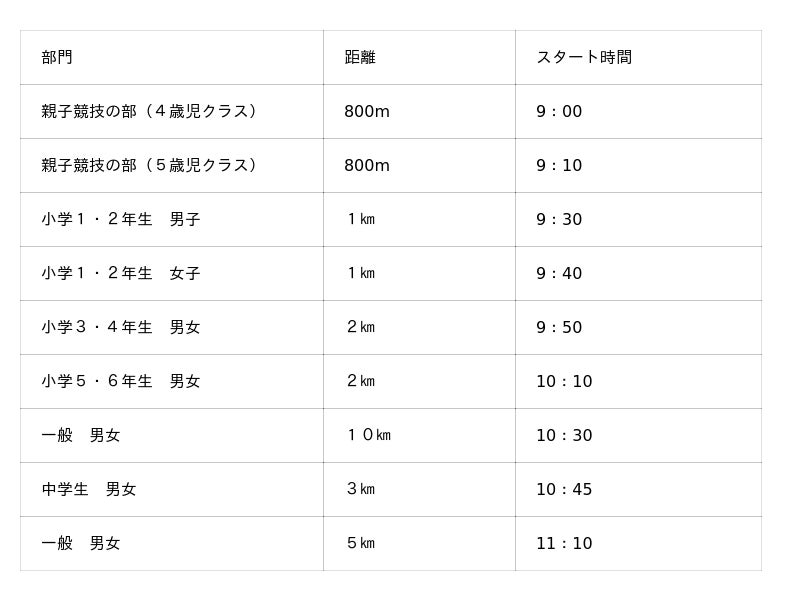 8 スタート予定時刻・部門(9レースで14部門を実施)