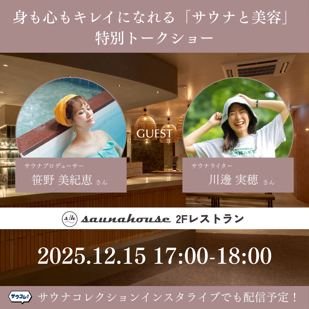また、メディア・インフルエンサー向けのオープニングイベントとして、12月15日(月)には、「サウナ×美容」の第一人者でサウナプロデューサーの笹野 美紀恵さんとサウナライターの川邊 実穂さんによるトークショーを開催。