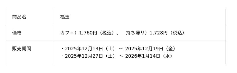 さらに、毎年販売を待ち望む声を多くいただく「福玉」を、昨年同様、正月事始めにあたる12月13日(土)より発売します(※クリスマス期間中は販売休止)。