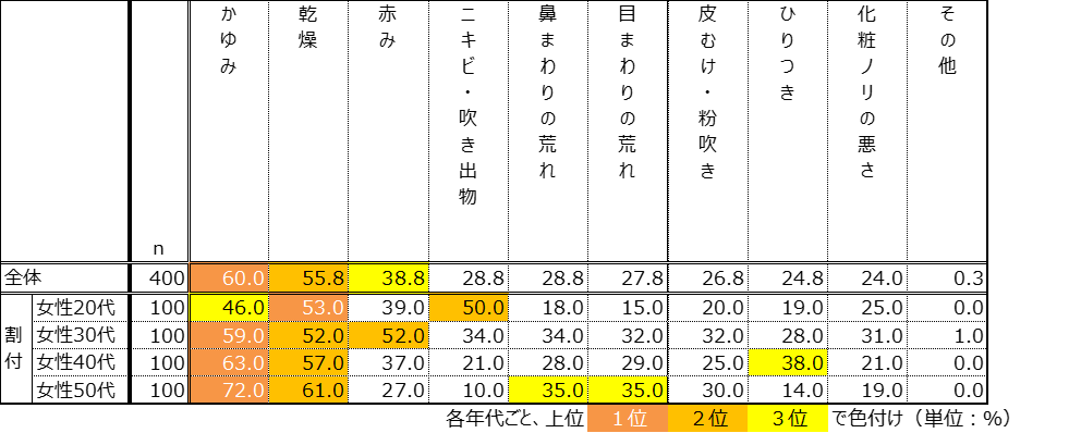 1.花粉シーズンの肌トラブル上位は「かゆみ」「乾燥」「赤み」