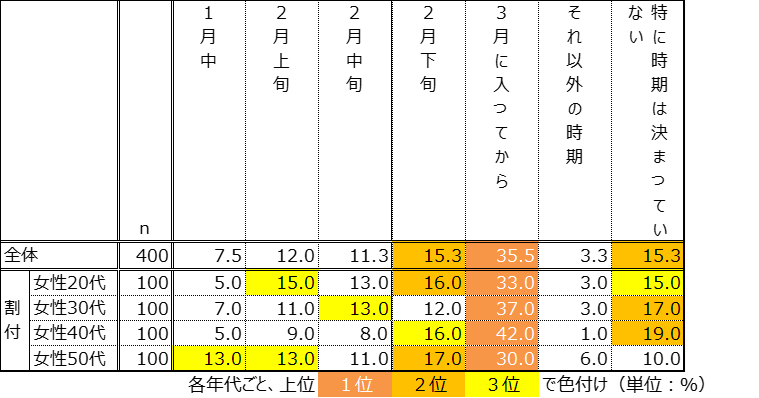 Q3.2026年の花粉シーズンに向けて、いつから肌荒れ予防を行いますか?(n=400/単一回答)