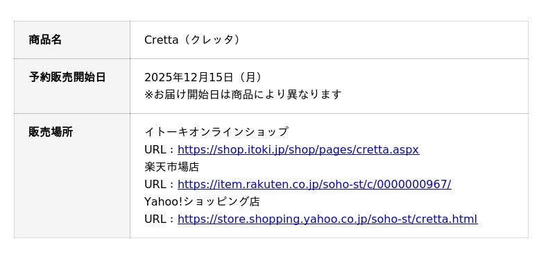 株式会社イトーキ(本社:東京都中央区、代表取締役社長:湊宏司)は、未就学児から大人まで“暮らしと成長に合わせて変化し続ける”学習家具シリーズ「Cretta(クレッタ)」を新発売します。予約販売開始は2025年12月15日。シンプルでコンパクトな家具が選ばれる流れが広がっている潮流をふまえ、デスク・収納・天板カラーを自由に組み合わせ、成長段階やライフスタイルに応じて使い方を変えられる組み合わせ学習家具シリーズです。未就学児期のキッズスペース作りから学生・大人の学習・仕事環境まで、長く寄り添い続けることを目指しました。