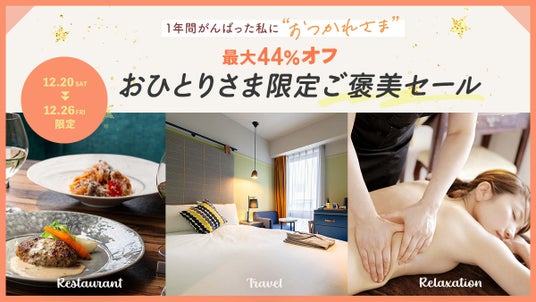 <12/20~26限定>最大44%オフ!「おひとりさまご褒美セール」おすすめプラン5選 ※リンク先はすべて12/20にオープン
