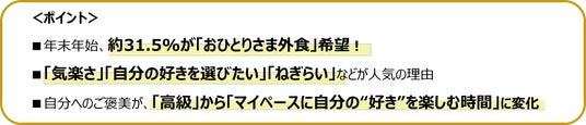 3人に1人が年末年始に“おひとりさま外食”を希望!「高級」よりも「マイペースに“好き”を楽しむ」がご褒美の新常識