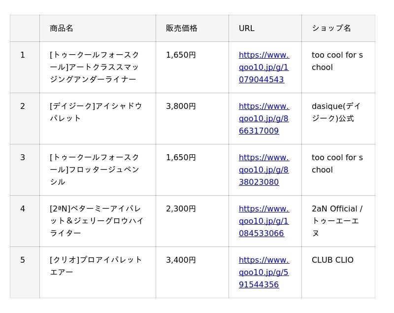 『アイシャドウ』 ランキング