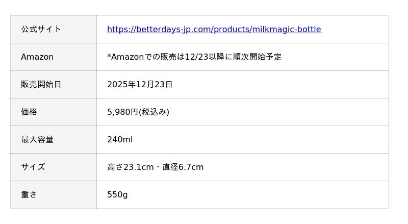 milkmagic「冷却ボトル」は、高品質なベビーテック商品の認定を行う「BabyTech(R) Awards 2025-26」認定商品に選出されており、2026年1月に各部門の大賞・優秀賞の発表が予定されています。