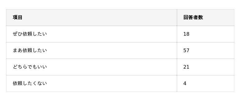 - 同じスタッフに次回も依頼したいと思う人は75%ほど。