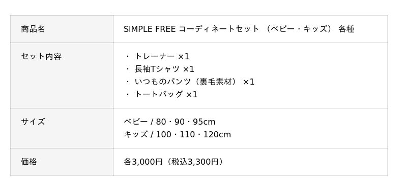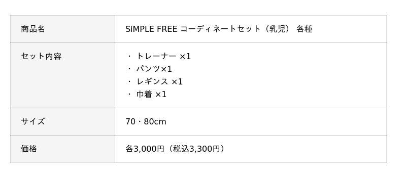 アカチャンホンポのオリジナルブランド「SiMPLE FREE」のコーディネートセット!