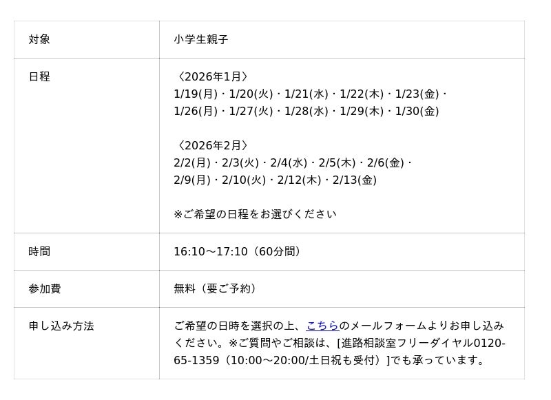 受験生はもちろん、低学年のお子さんもぜひご参加ください。