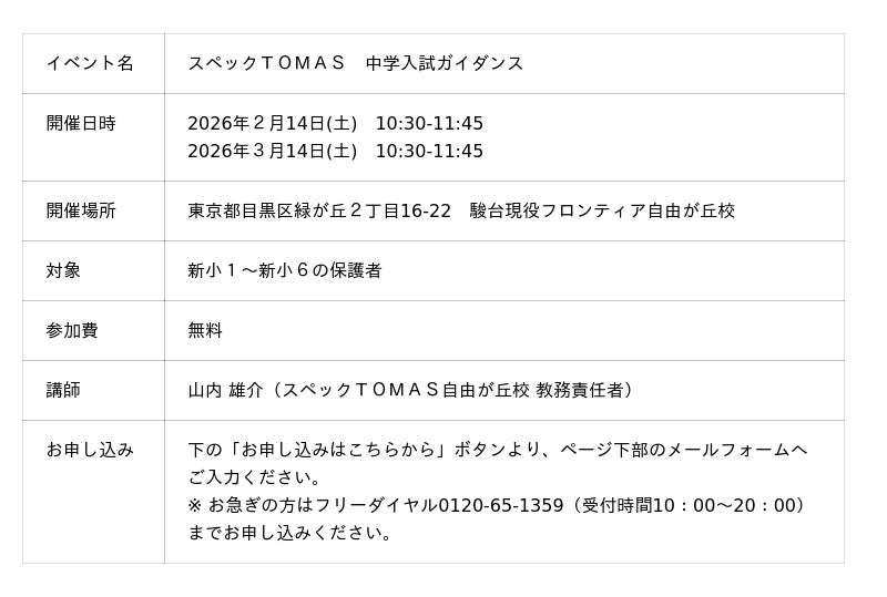【新小1~新小6の保護者向け】2026年度中学入試問題分析 ― スペックTOMAS「中学入試ガイダンス」開催