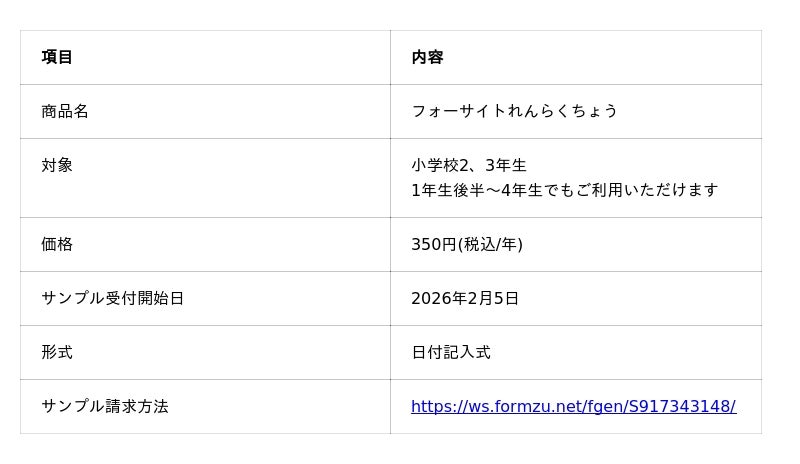 【FCE・フォーサイトシリーズ初】小学校低学年向け 「フォーサイトれんらくちょう」を 2026年2月5日より提供開始