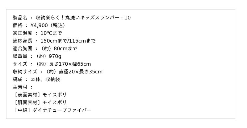 【 収納楽らく!丸洗いキッズスランバー・10 】 https://www.logos.ne.jp/products/info/11688