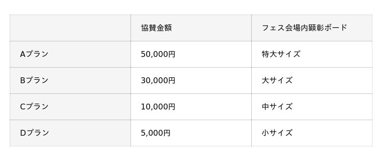 フェス会場内顕彰ボードのサイズに応じて、下記4つのプランを用意いたしました。