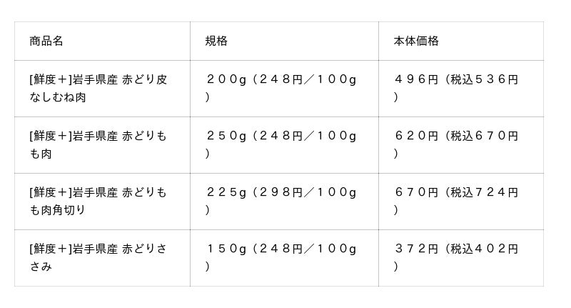 ※価格は2月5日時点。商品写真は「[鮮度+]岩手県産 赤どりもも肉」です。