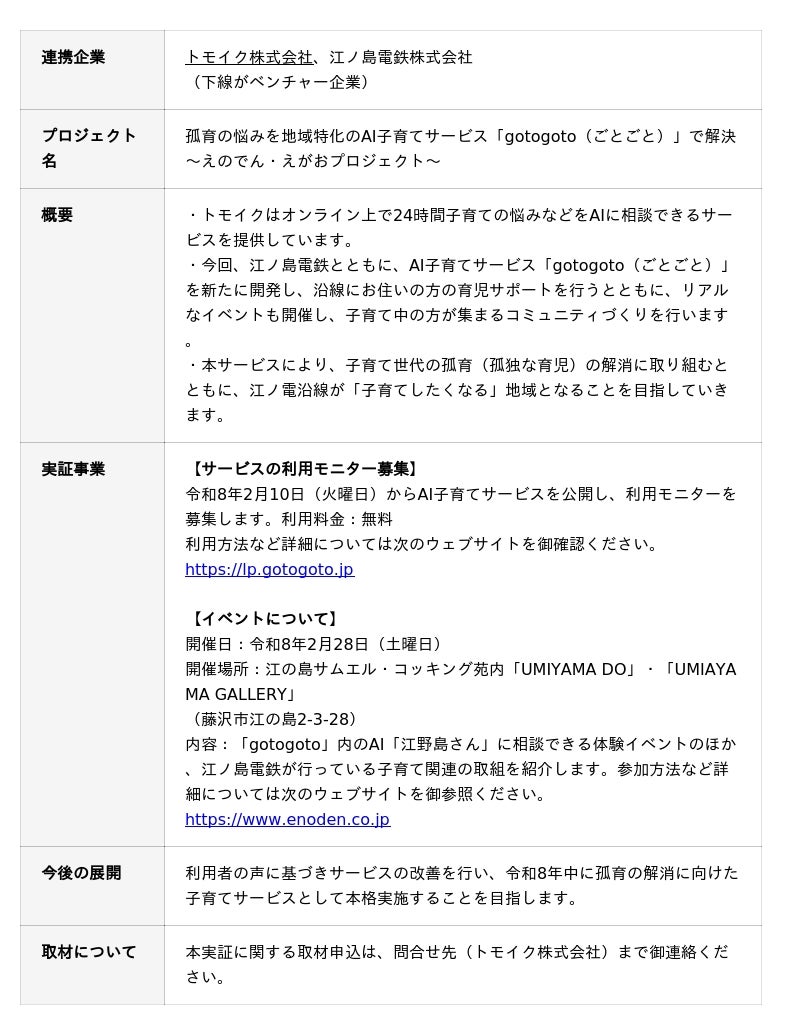 このたび、令和7年度の支援プロジェクトに採択されたトモイク株式会社と江ノ島電鉄株式会社が、連携して実証事業を開始しますので、お知らせします。