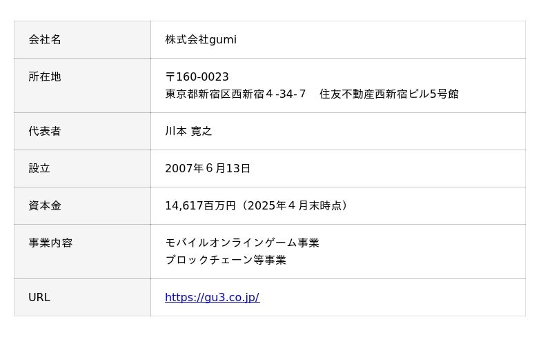 gumiは、「Wow the World! すべての人々に感動を」をMissionに掲げ、モバイルオンラインゲーム事業とブロックチェーン等事業の二つの事業を展開しています。モバイルオンラインゲーム事業では、『当社ゲームエンジン×IP』を軸とした収益性の高いタイトル開発を推進するとともに、開発受託にも注力しております。ブロックチェーン等事業では、ブロックチェーンゲーム等のコンテンツ開発、暗号資産を基盤にしたプラットフォーム構築、有力ブロックチェーンのノード運営、グローバルにおけるファンド投資等を行っております。