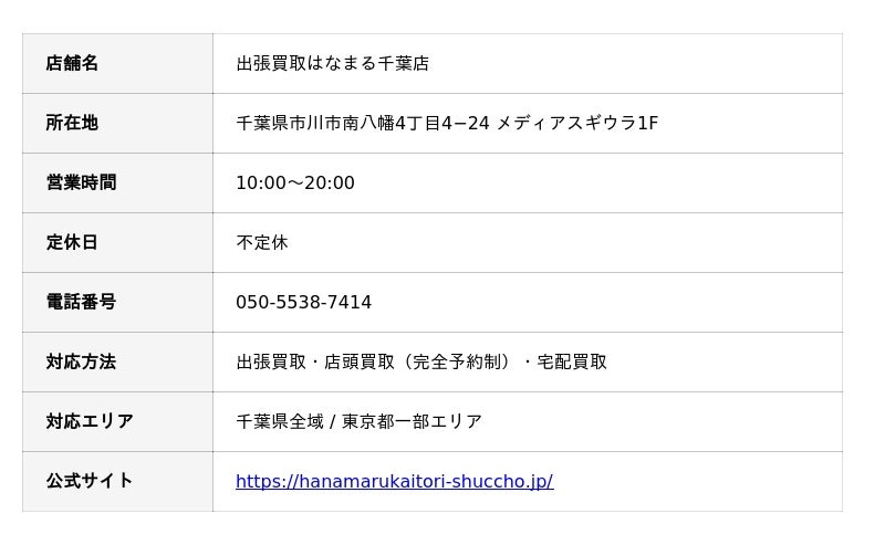 出張買取はなまる千葉店の店舗詳細