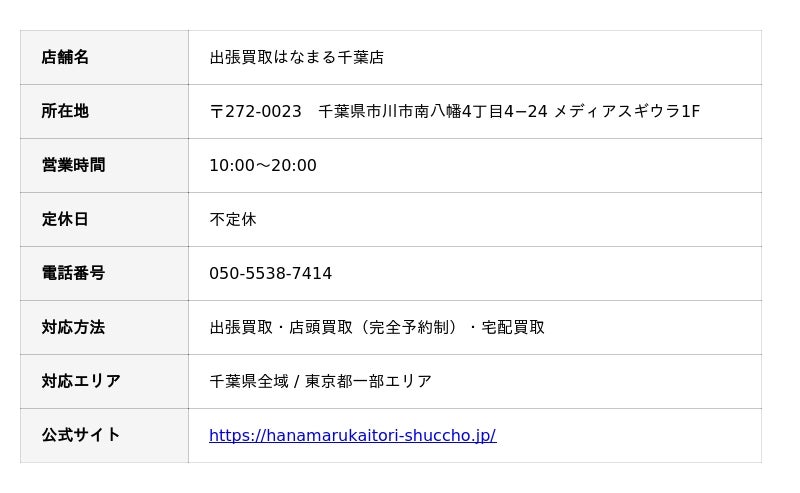 出張買取はなまる千葉店の店舗詳細