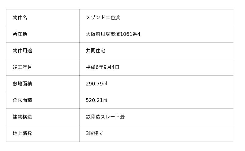 対象物件は、大阪府貝塚市に所在する1K全21戸の賃貸マンションで、みんなでシェアファンド23号(みんなでシェアファンド4号・13号)の再組成ファンドです。