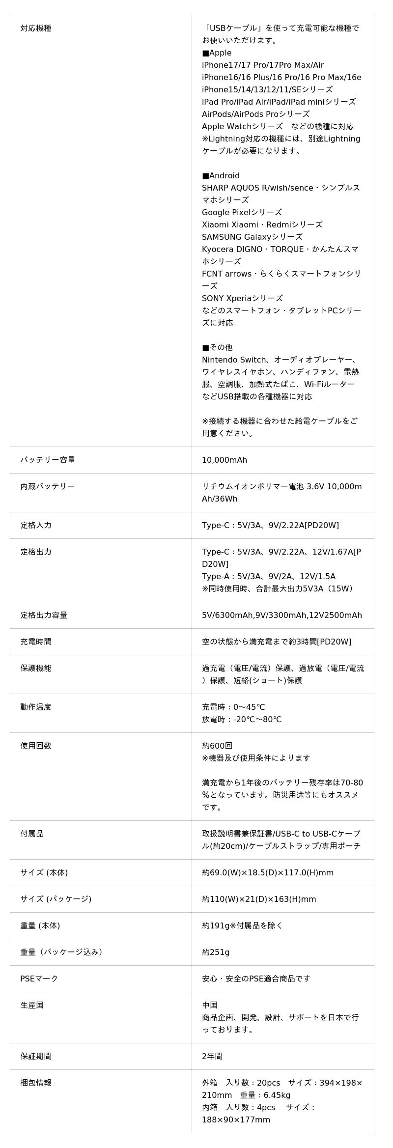 スマートフォンもバッテリー本体への充電も、PD20W急速充電可能でスピーディに充電ができる、小さくてもパワフルな優れものです。