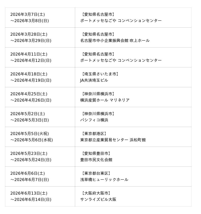 単独展示会(出張店舗) 開催情報