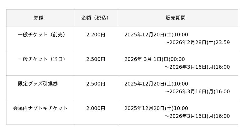 ※「限定グッズ引換券」のみでの入場はできません。別途、一般チケット(前売・当日)をご購入ください。