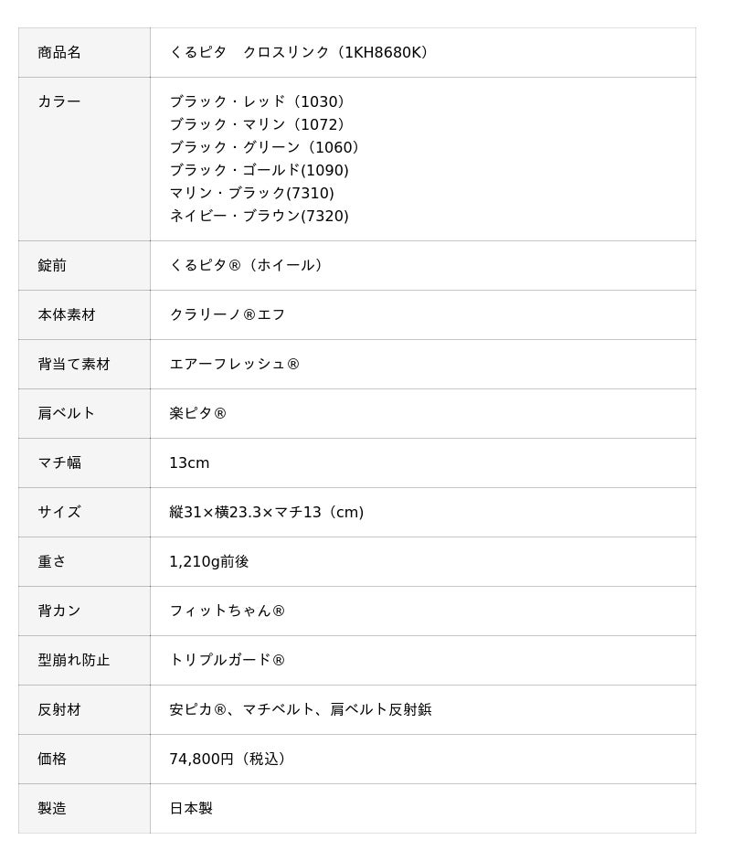 詳細については、くるピタ公式オンラインストアにてご確認ください。