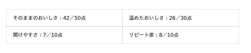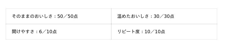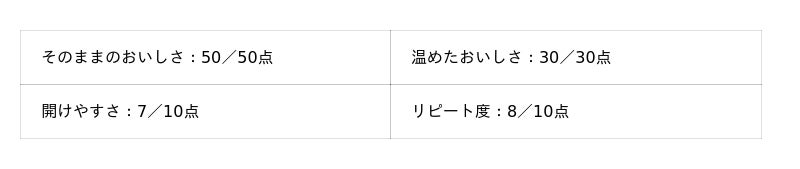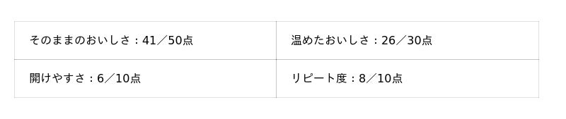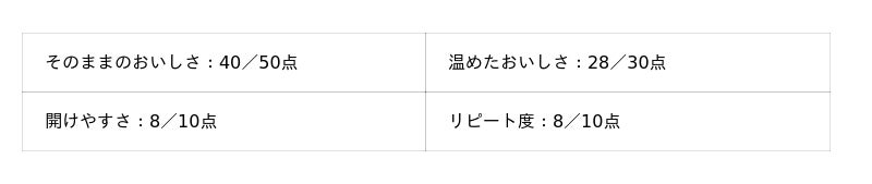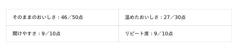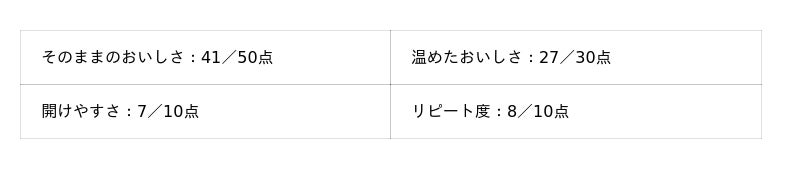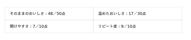 - そのままのおいしさ:50点満点