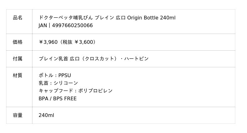 Betta|【 3/5 発売 】ドクターベッタ哺乳びん ブレイン 広口 Origin Bottle 240ml / 数量限定〈 ベッタ 31周年 〉